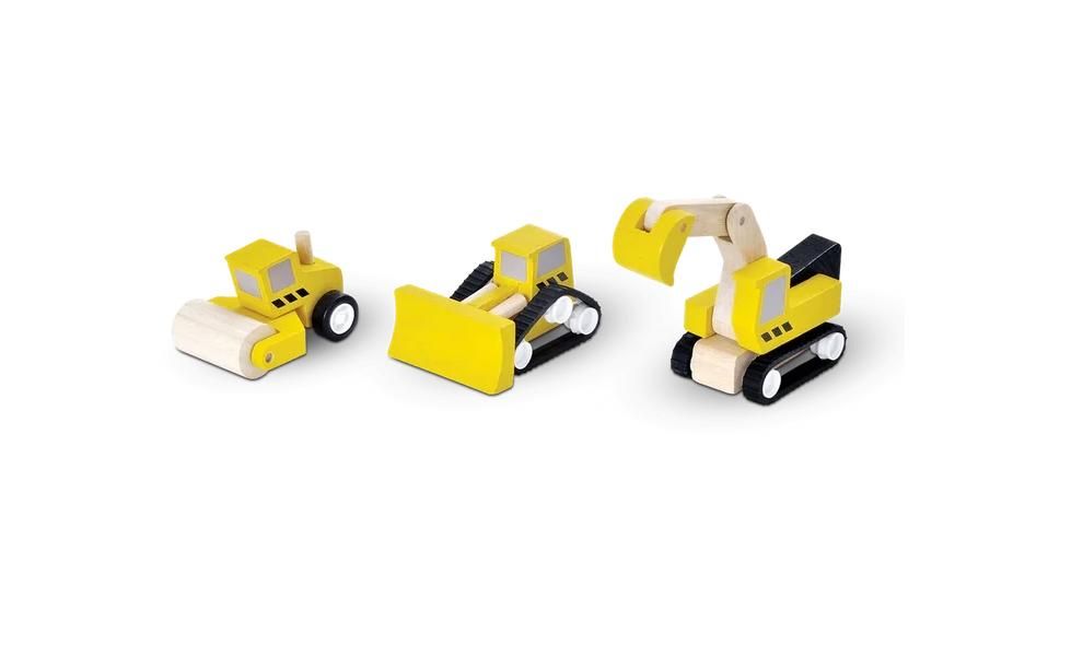 Includes a roller, bulldozer and excavator for construction play